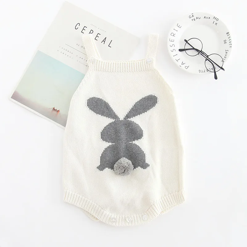 2022 Cute Rabbit Knit Rompers Children’s Winter Baby Girls Sleevless Rompers Outfit Clothes Toddler Newborn One-Pieces Jumpsuit