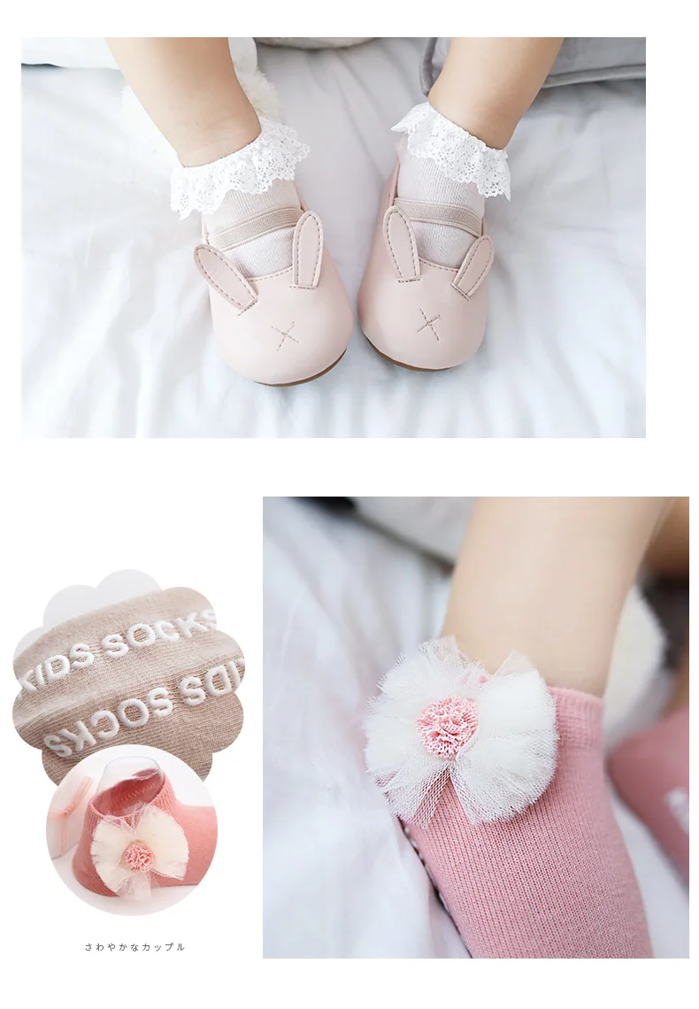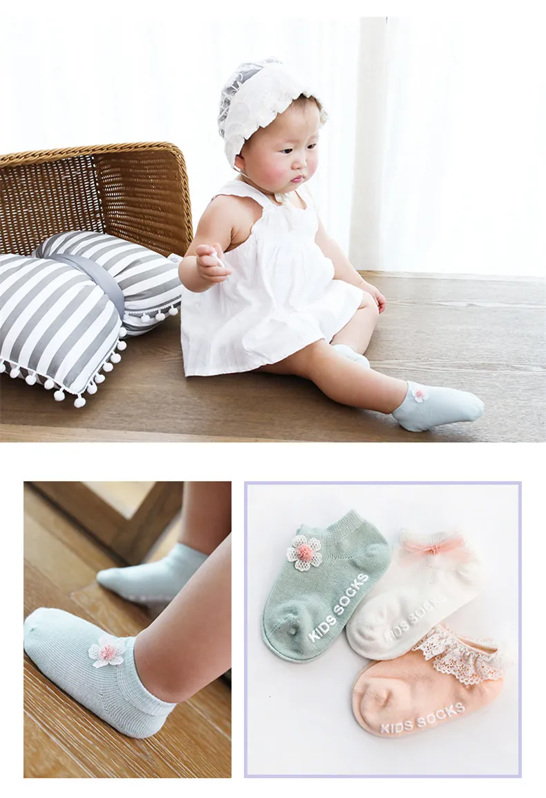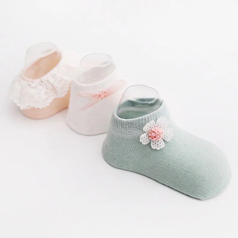 3 Pairs/Pack Toddler Anti-slip Floor Sock Baby Girls Bowknot Flower Socks Princess