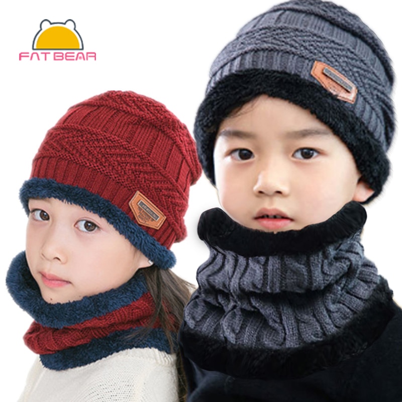 Coral Warmer Baby Boy Hat Scarf Set Winter Beanie Knit Cotton Warm Caps Soft Hat For Children Girls Hip Hop Caps