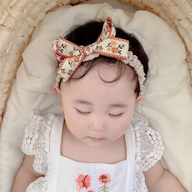 Big Bows Baby Headband Embroidery Girls Floral Hair Bands Nylon Children Princess Headwrap Toddler Korean Style Turban