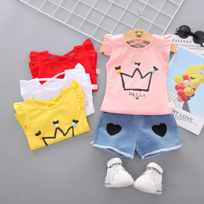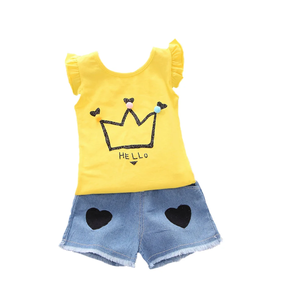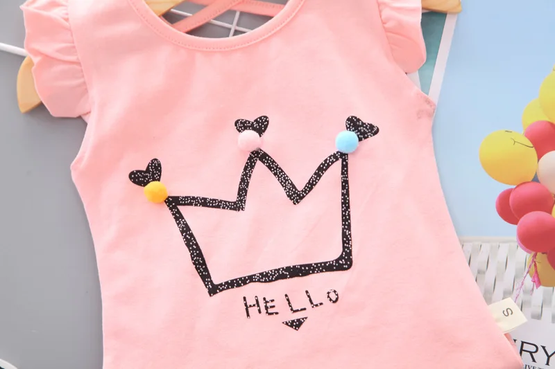Girls Summer Tee outfits 6 months–3 years Toddler kids baby girls outfits cotton T shirt+ Shorts Pants clothes cute Set crown