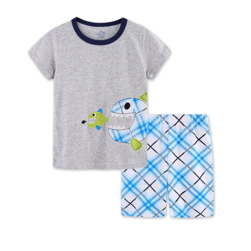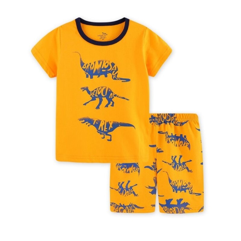 Red Dino Children Clothes Sets Dinosaur Boys Pajamas 2-Pieces Suit Baby Boy pajama Kids Tee Shirt Shorts Pant 100% Cotton