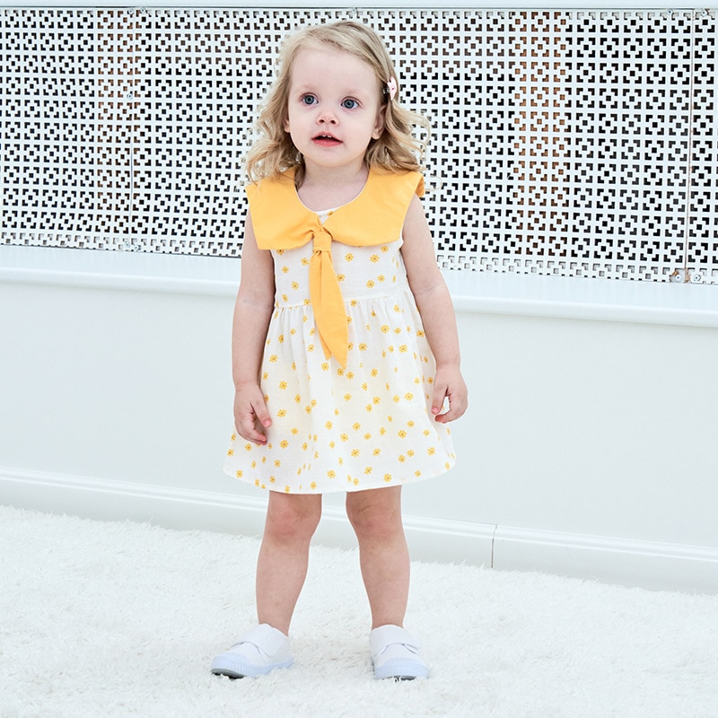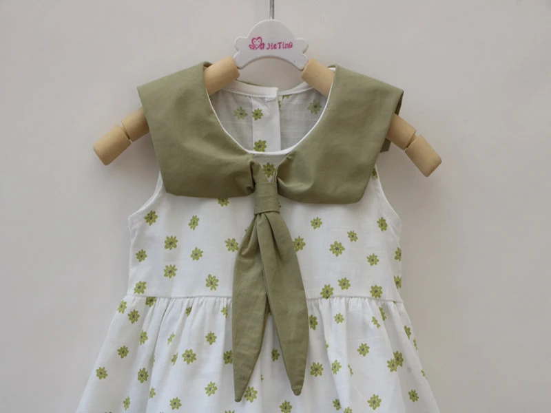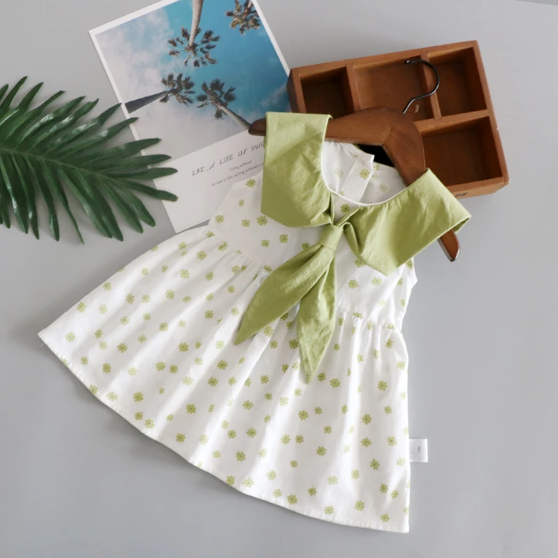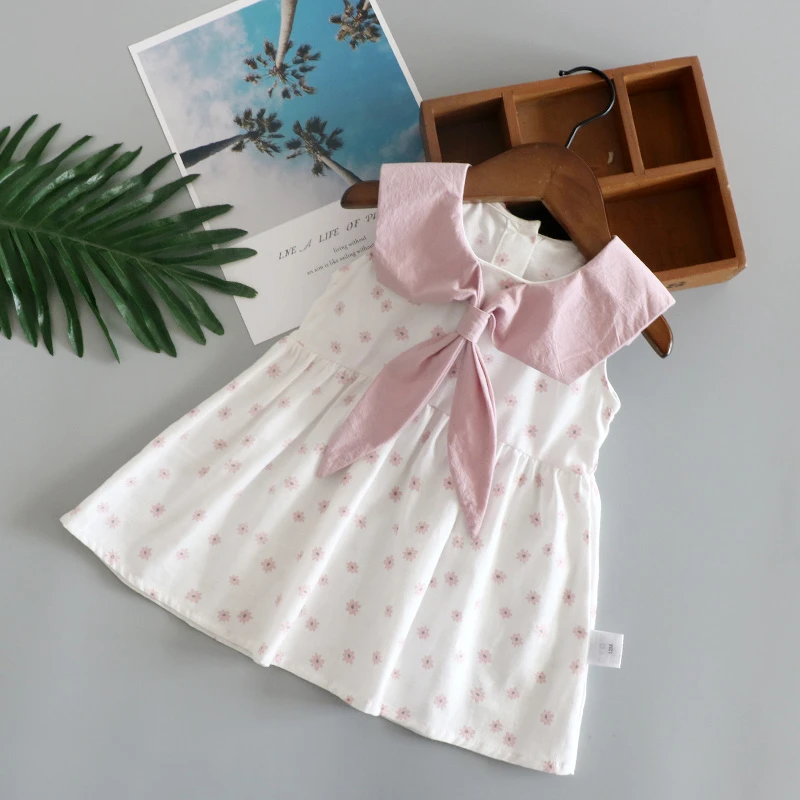 Kids Girls Dress 2023 Summer Sleeveless Sailor Collar Princess Dresses Cotton Baby Girl Clothes