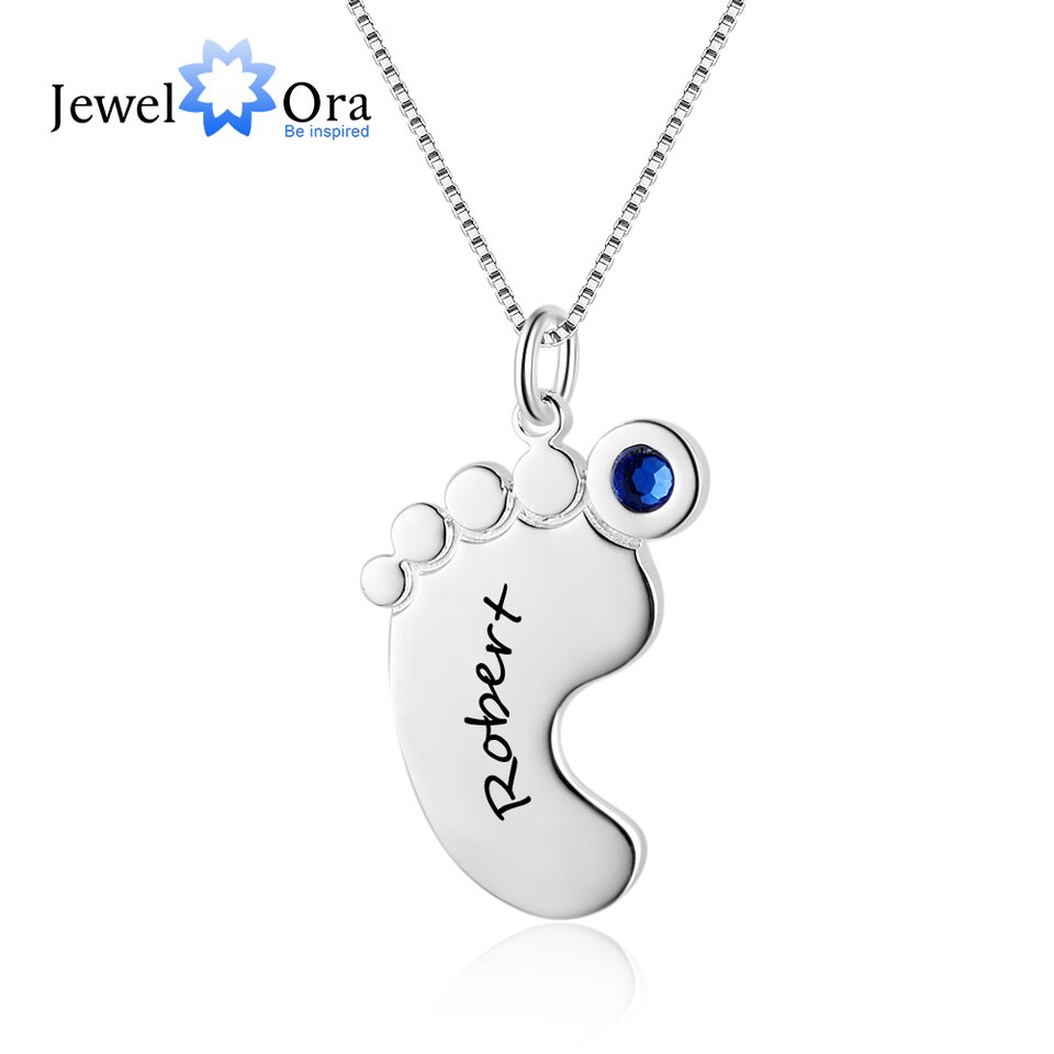 Personalized Baby Feet Pendant Necklace Custom Name & Birthstone Silver Color Necklace for Mother Mom (JewelOra NE102376)