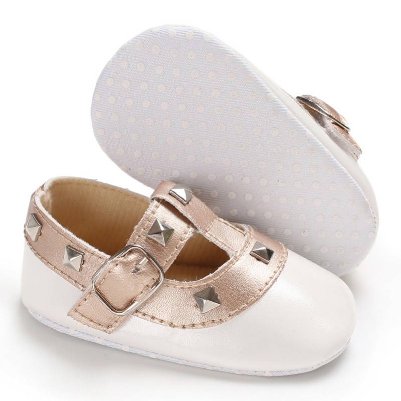 Fashion Autumn Winter Stitching Rivet Princess shoes Cute Baby Girl Soft Soled PU Shoes Infant Walking Dress Cradle Shoe