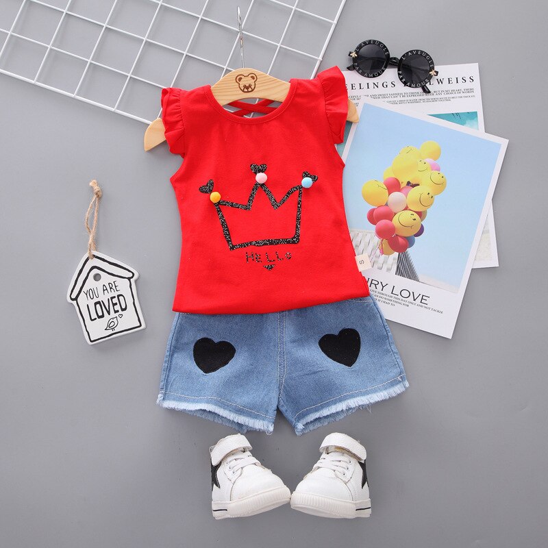 Summer Cute Cartoon 2PCS Kids Baby Girls Floral T-shirt Top Shorts Pants Set Clothes Girls Clothing Sets