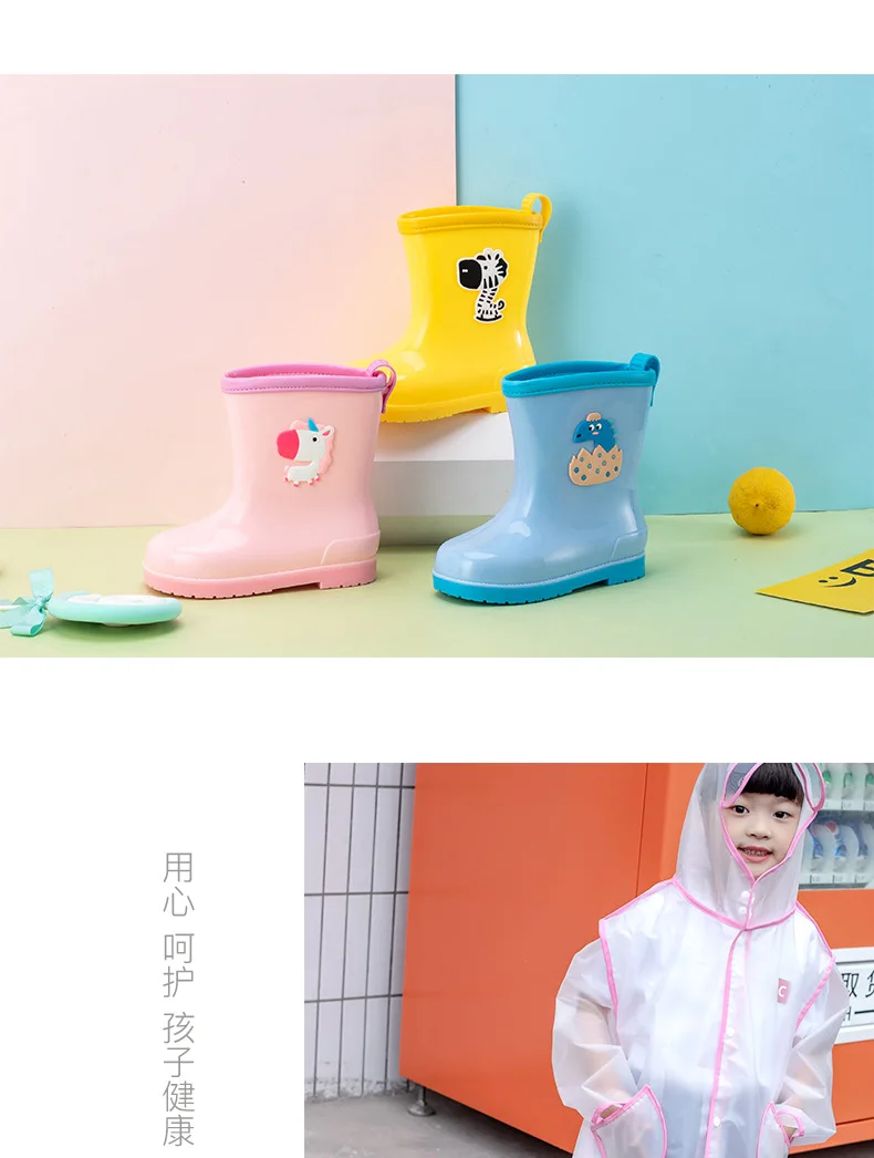 Children’s Rain Shoes Girl’s Cartoon Anti-slip Kid’s Rain Boots Water Shoes Baby Pink Black Shoe Boy’s Rubber