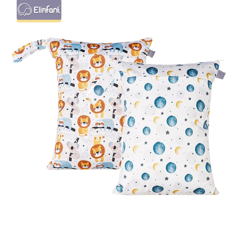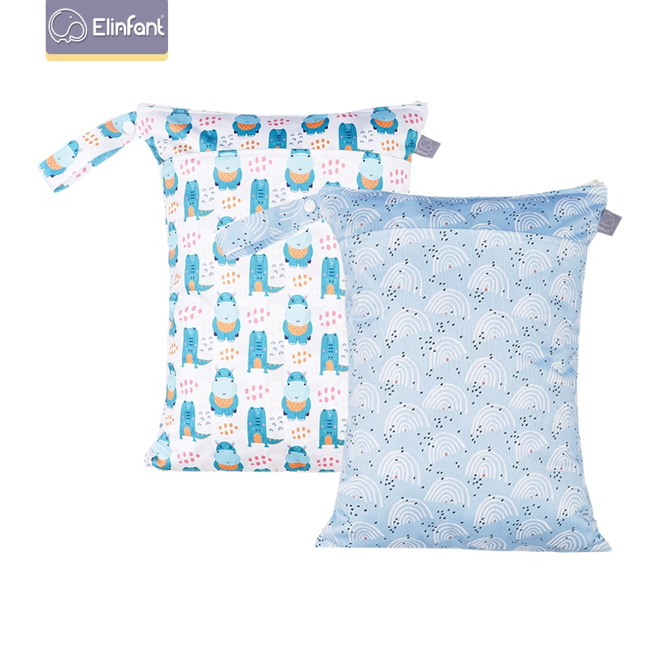 Waterproof PUL Two Zippered Pockets Small Pouch Cloth Diaper Bag Wet Dry Bags For Baby Clean Soiled Items Travel Beach